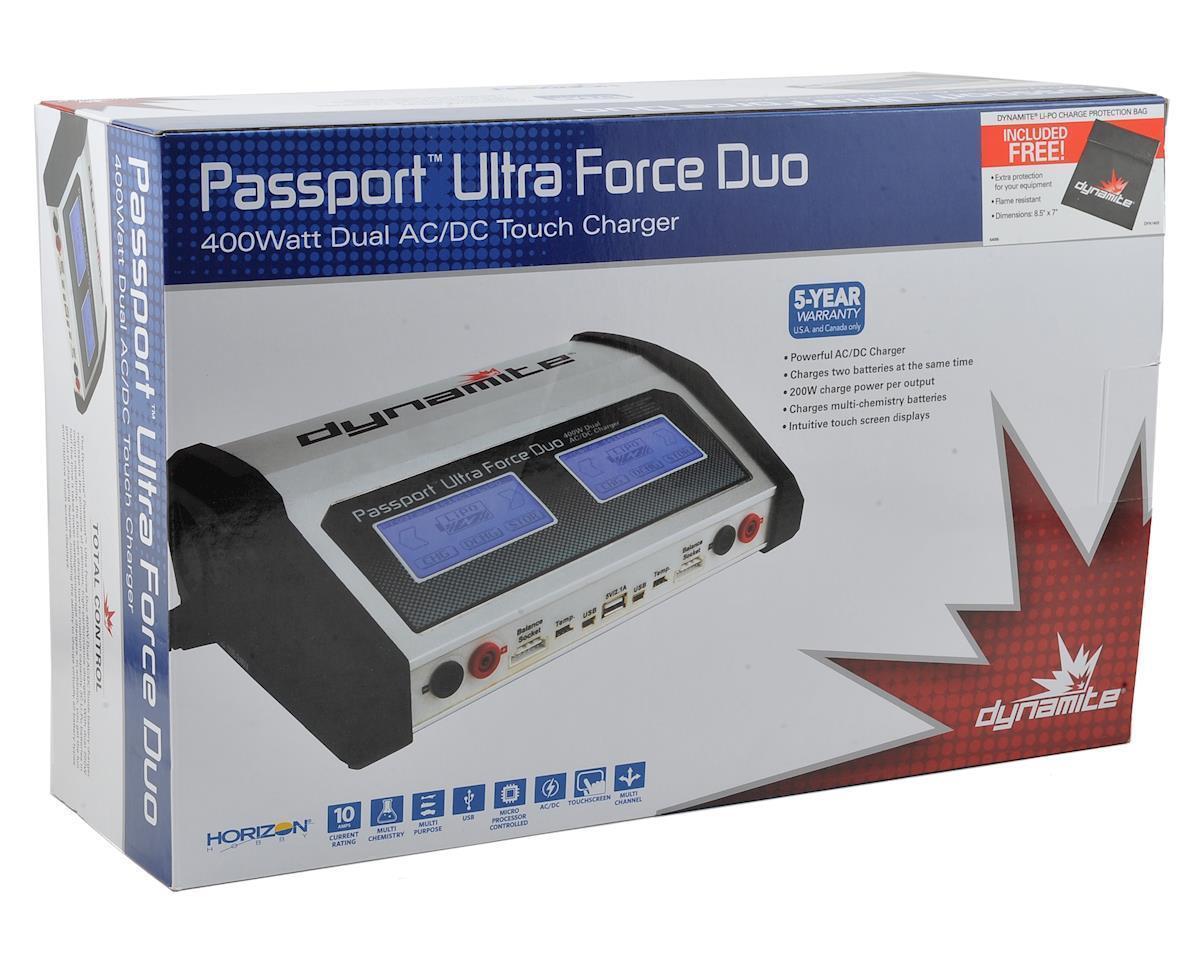 Here you have a Dynamite DYNC3005 Passport Ultra Duo 400W Duel AC/DC Touch Screen Li-Po Balance charging system to charge 1-6 Cell Li-Po And Ni-mh Batteries For Heli's, Cars, Boats, Trucks And Planes !!