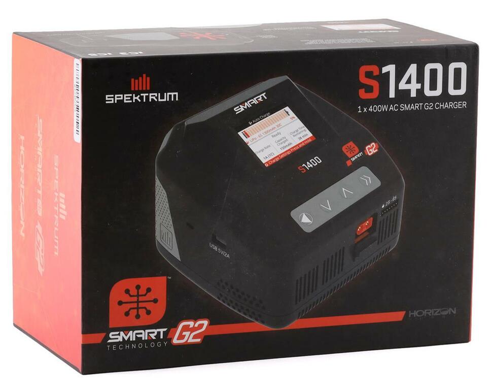 The 400W Spektrum™ S1400 Smart G2 AC Charger provides fast, easy charging for all modelers, especially using Smart batteries — with Auto Charge simplicity, one-connection balancing, IC3® or IC5® output ports for adapter-free convenience, and more.