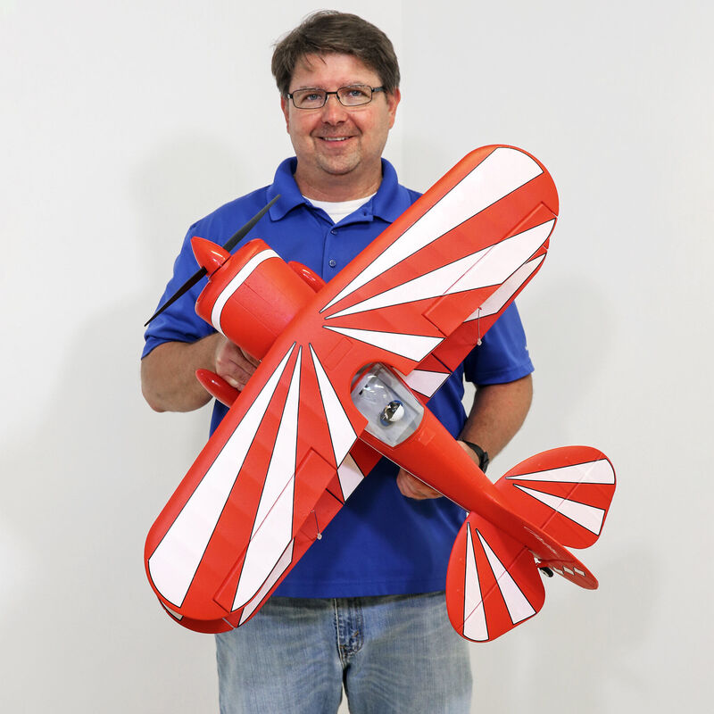 Besides the careful attention to every outline, scale detail includes the look of fabric covered construction, plus detents highlighting where panels and hatches are found on the full-size. The characteristic wedge-shape fuselage is crowned with a scale spinner in a shape often found on high-powered versions of the Pitts bipe while the cockpit area is neatly appointed with an enclosed canopy and painted pilot figure. Optional-use flying wires for added scale looks are also included.