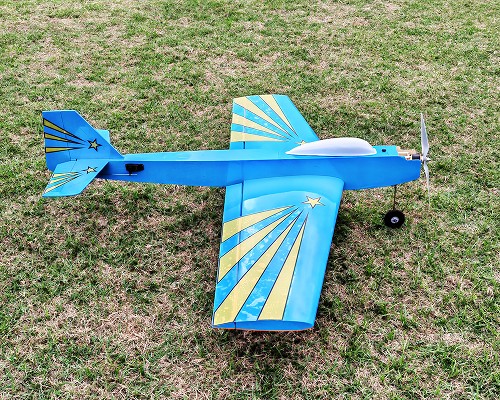This plane has a 54 inch wingspan and it is 100% balsa and plywood construction, covered and ready to assemble.