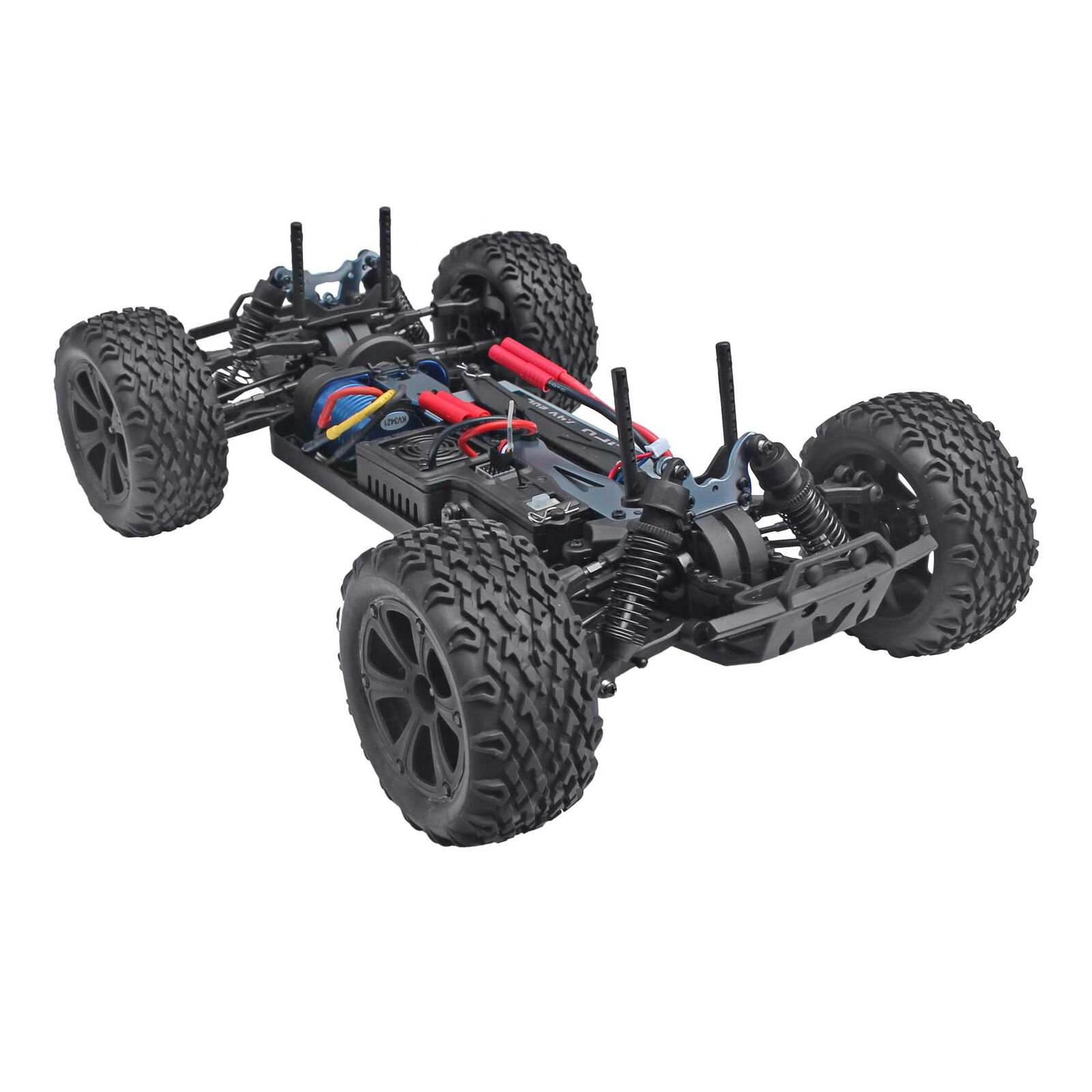 A shaft drive 4WD drivetrain provides all the traction you need to maneuver the toughest obstacles, while the lightweight plastic chassis, and independent suspension with eight aluminum cap oil filled coil over shocks deliver rock solid performance that is fast and affordable.