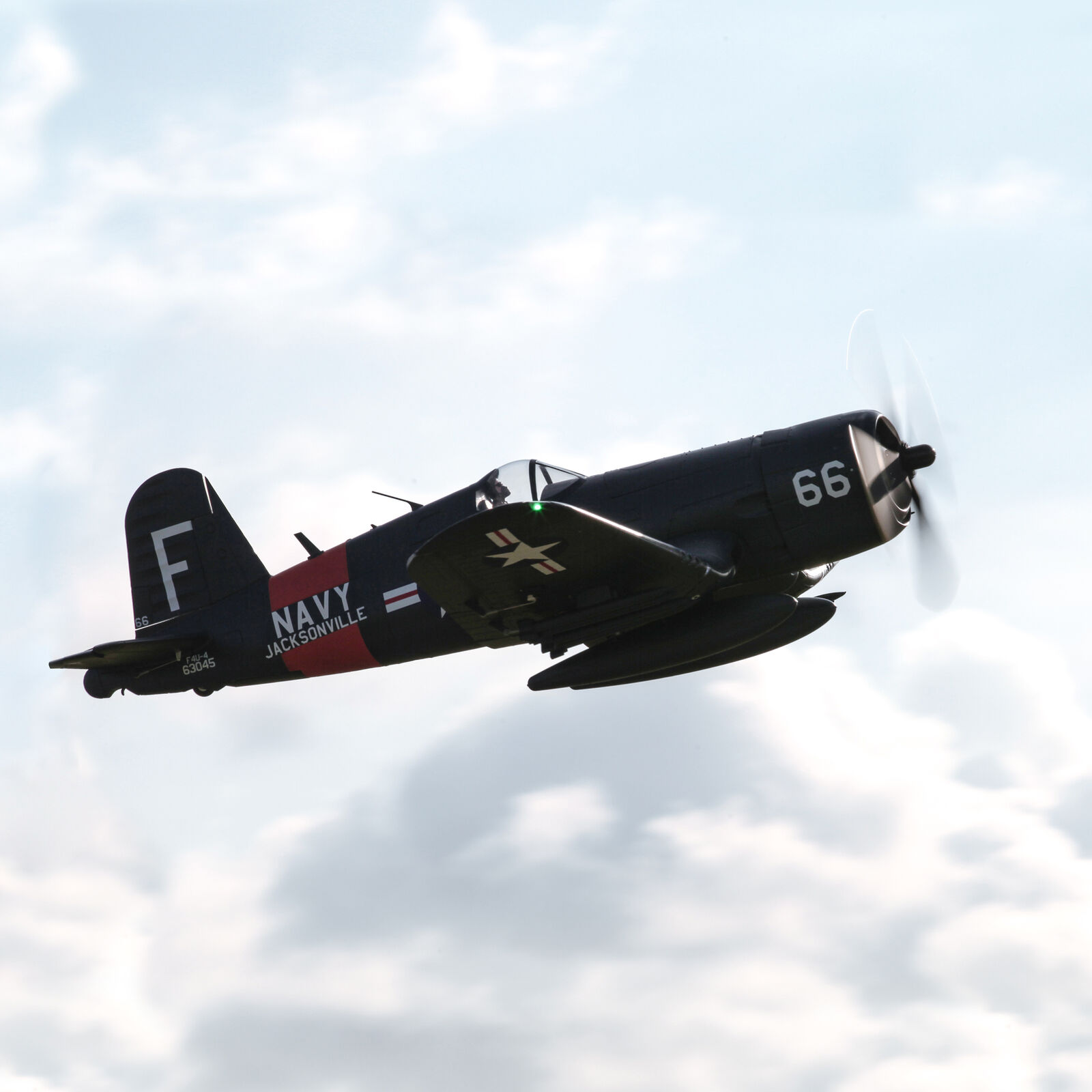 Committed to creating the most visually realistic aircraft on the market, FMS has added numerous scale features onto the 1700mm F4U V3. Pitot tubes, missile racks, auxiliary fuel tank, aerials, exhausts, realistic tail gear, pilot figure etc. allow the aircraft to look statically realistic. Rotating electric retracts, 3 position flaps, navigation and landing lights, slow retracting gear bay doors add to the dynamic realism of the aircraft.