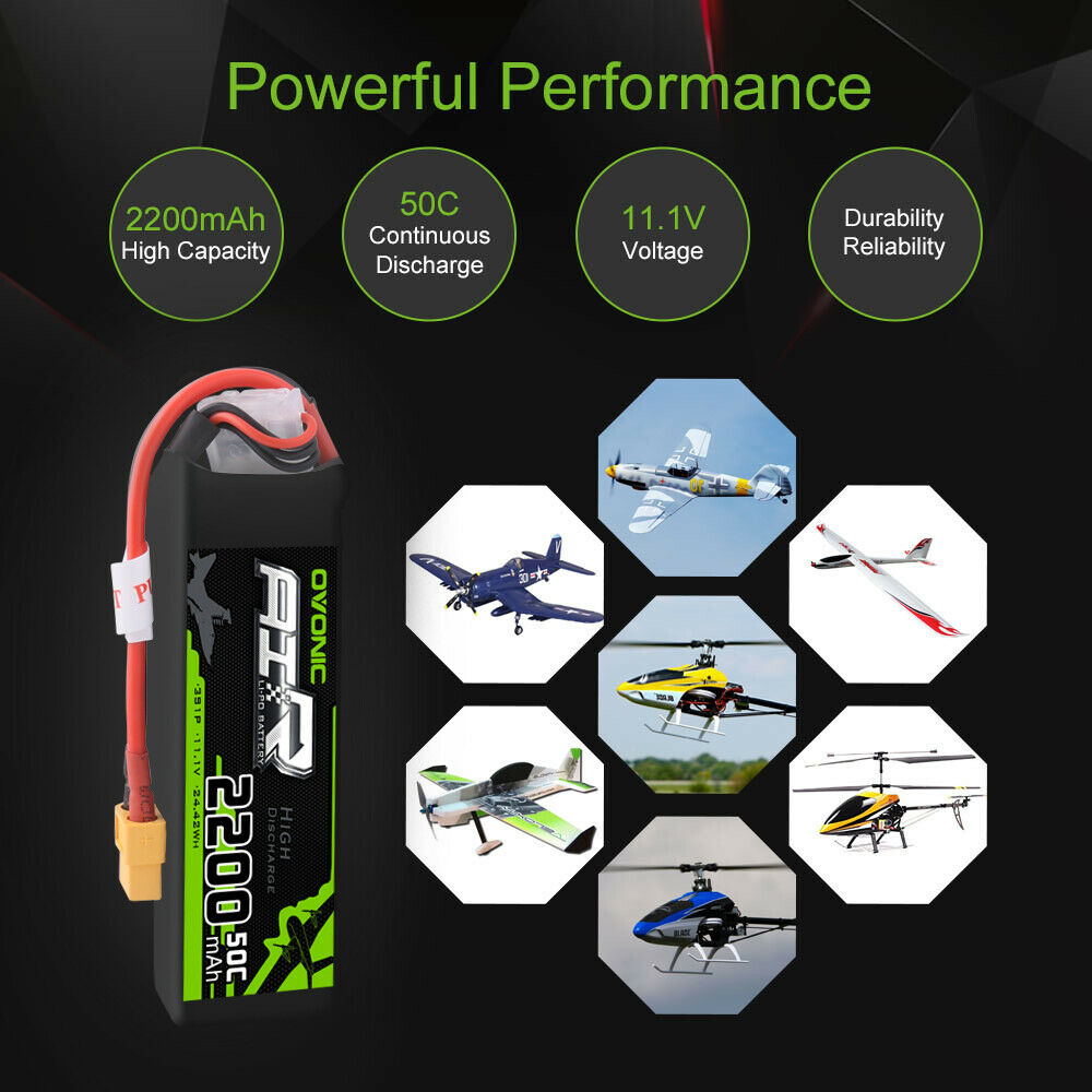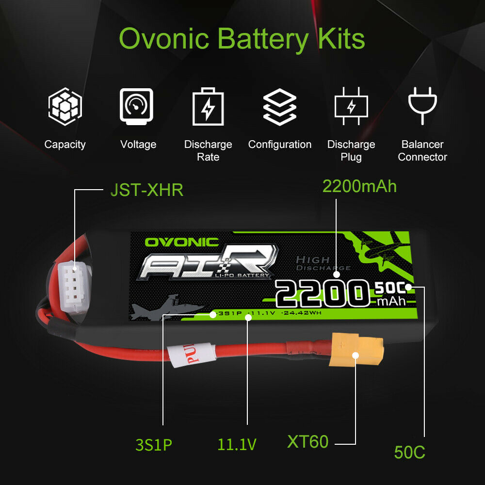 OVONIC 3S 11.1V 2200mAh 50C Lipo Battery Pack with XT60 for RC Evader BX Car RC Truck RC Truggy RC Airplane UAV Drone FPV