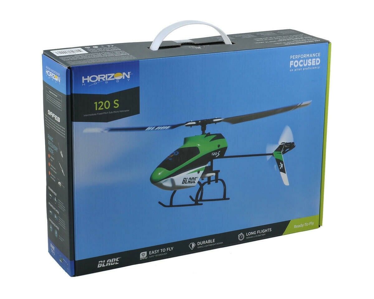 The Blade® 120 S features exclusive SAFE (Sensor Assisted Flight Envelope) technology, a revolutionary electronic flight envelope protection system that makes it easy for anyone to fly helicopters with confidence by providing flight mode versatility and Panic Recovery mode that automatically returns the 120 S to a level attitude.