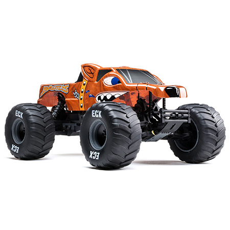 The ECX® Brutus Monster Truck is a true-to-life monster truck designed to intimidate the rest of the backyard bashers. Designed for new drivers in mind, the Brutus allows you to use your preferred battery/charger bundle. Of course, the incredible 2WD drivetrain, oil-filled coil-over shocks, and brand new wheel, tire and body design create plenty of havoc wherever it roams. Finally, the durable nylon composite chassis is powered by a high torque 550 sized 12T Dynamite® motor giving you the kind of thrills only an ECX vehicle can deliver. Pick your power, charge it up, and unleash the mad dog!