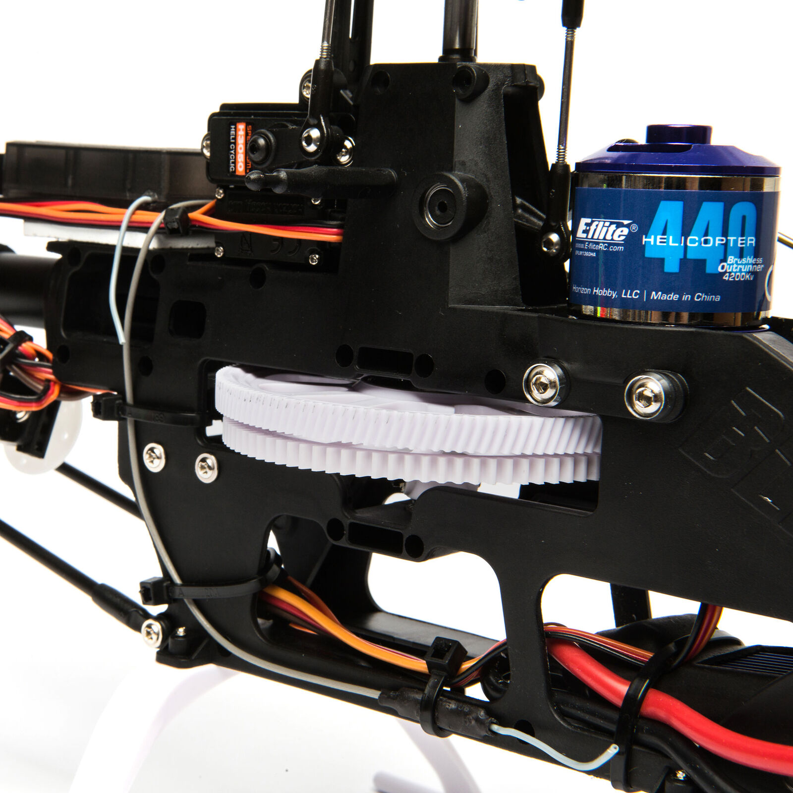 High performance metal gear digital servos provide crisp precise response on all flight control of the helicopter, as well increased durability from the metal gears.