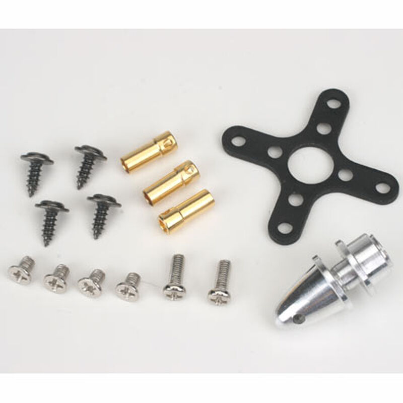 E-flite’s latest Park 370 is a brushless outrunner motor that features a 4mm hollow shaft, ideal for use with variable pitch propellers. It’s perfectly designed for electric models equipped with variable-pitch propeller systems, such as the E-flite® ShowStopper VPP system. However, you don’t need a VPP to use this motor—it’s an excellent motor for small 3D airplanes that weigh 7–14 ounces. A motor mount, prop adapter and all hardware are included.