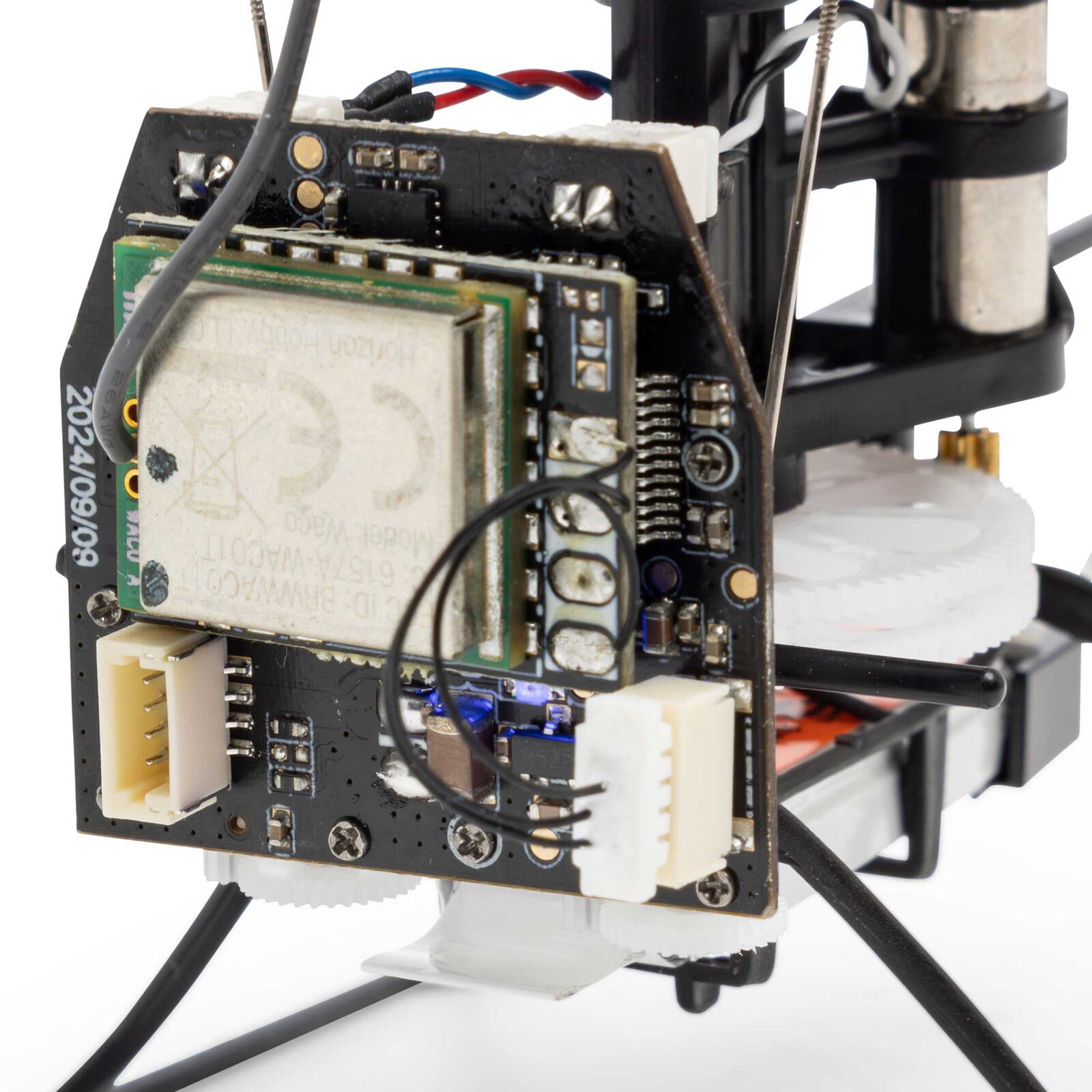 Factory-installed control unit featuring a Spektrum 2.4GHz DSMX/DSM2 compatible receiver, two servos, two ESCs, and a gyro